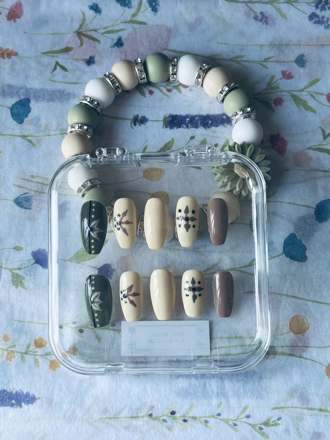 Cream and sage press on nails …