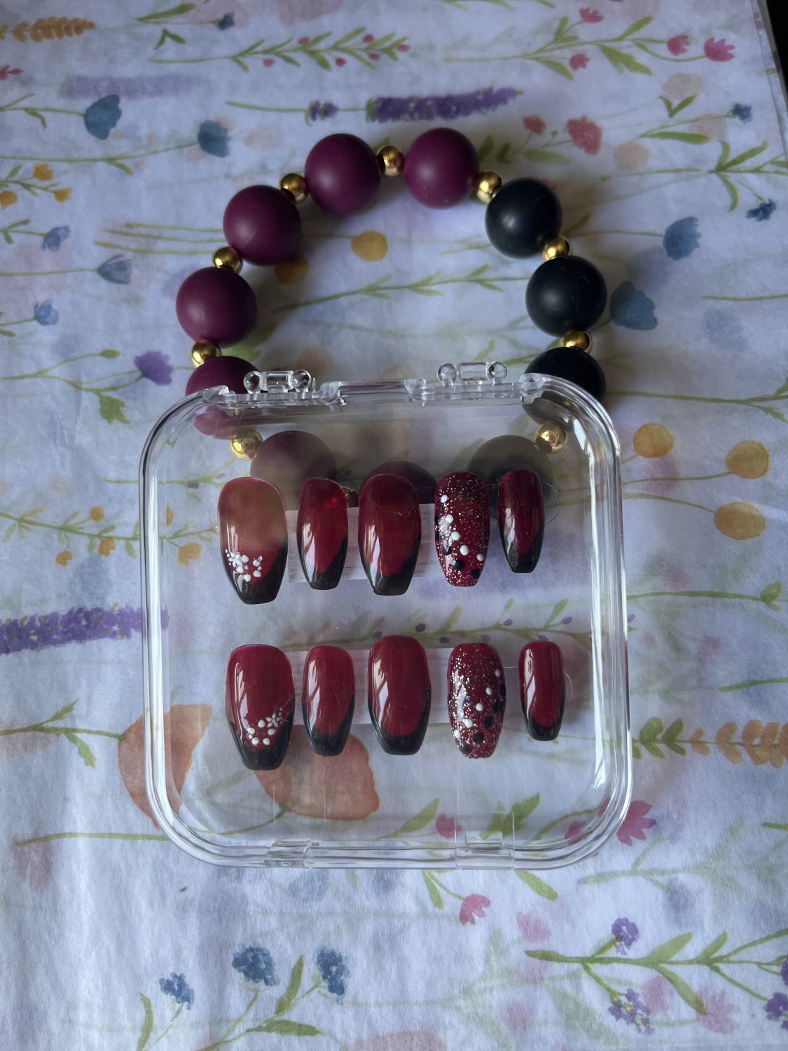 Burgundy press on nails gift b…