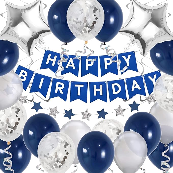 Blue Birthday Party Decorations, Birthday Decorations for Men Women Boys Grils