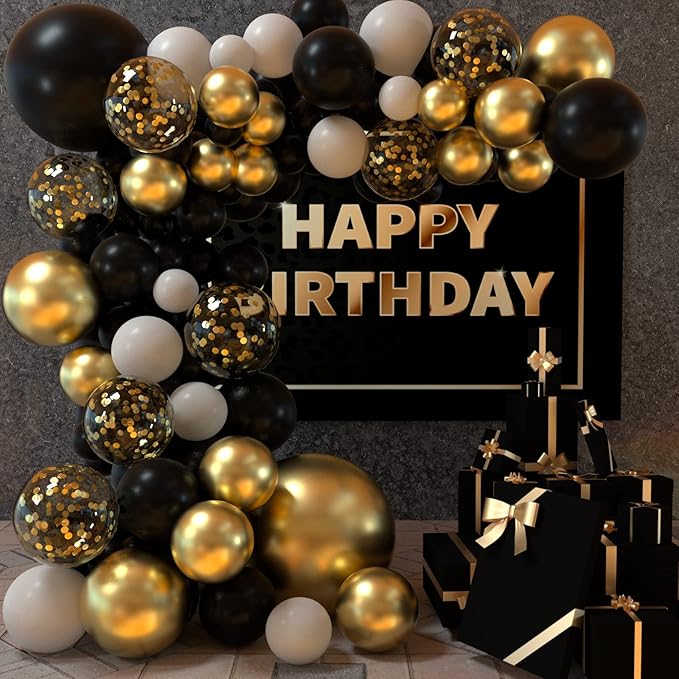 CHRORINE 50 Pack Black Gold Confetti Balloons 12 Inch White Black and Gold Balloons
