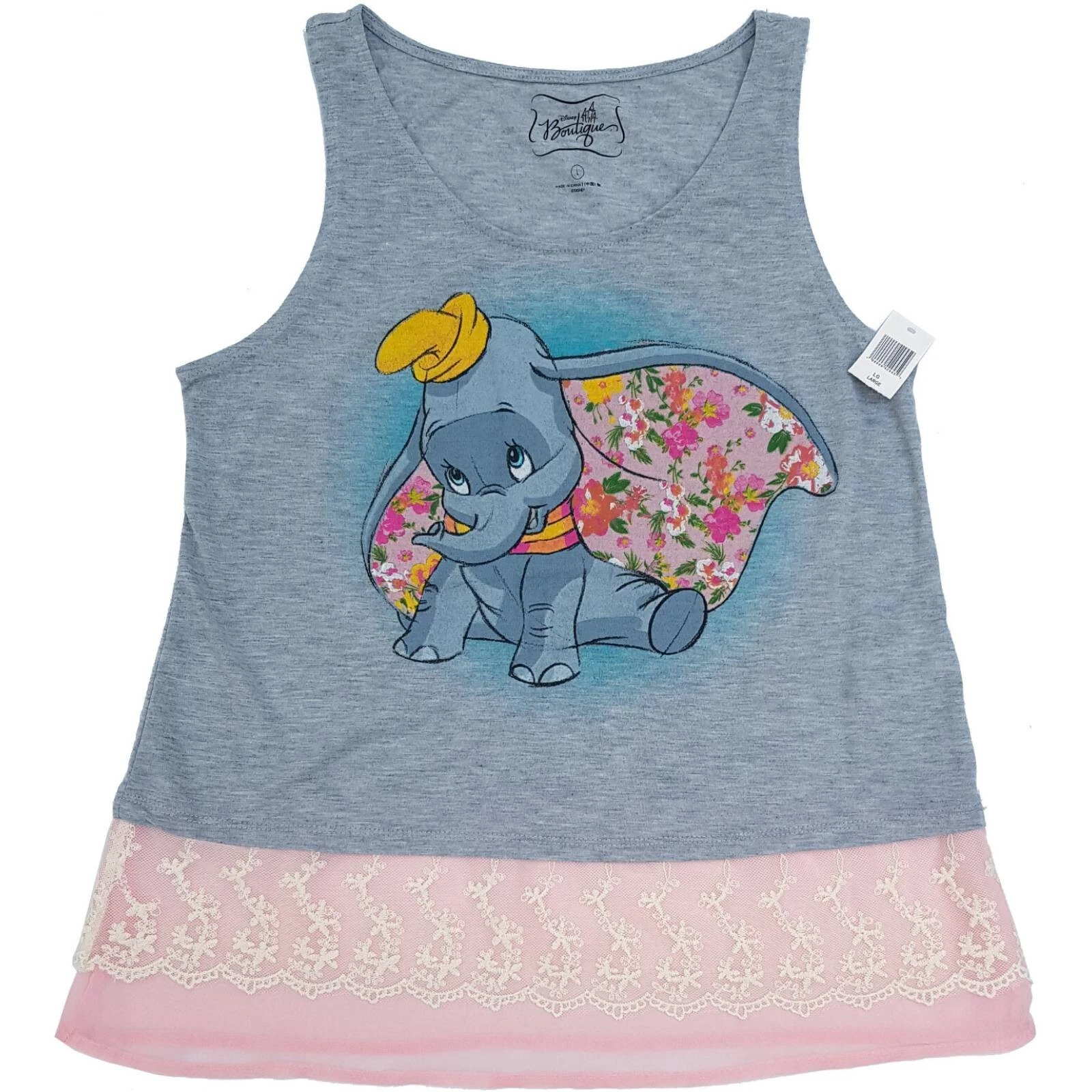 Disney Parks Boutique Dumbo Layered Style Vest With Lace Grey Pink XL Adult