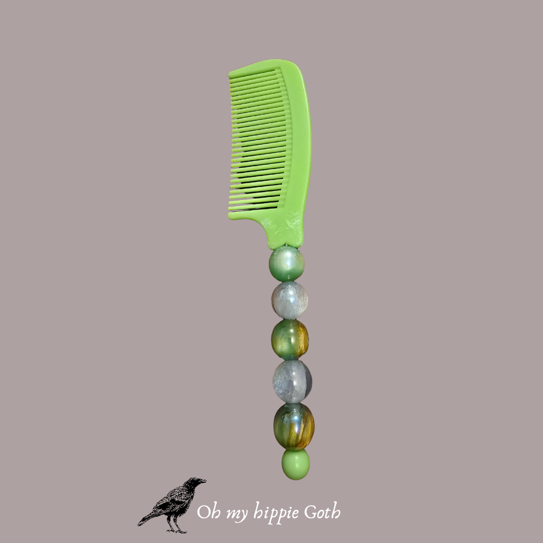 Green beaded hair comb