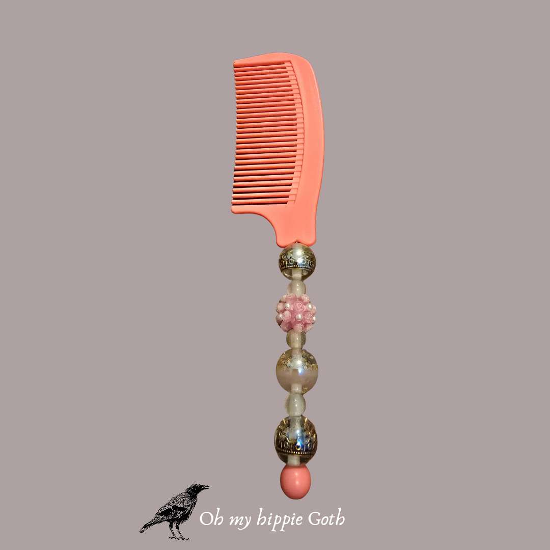 Pink beaded hair comb